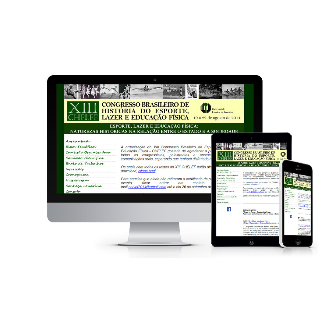 Site desenvolvido para o XIII CHELEF – Congresso Brasileiro de História do Esporte, Lazer e Educação Física – Universidade Estadual de Londrina (2014)